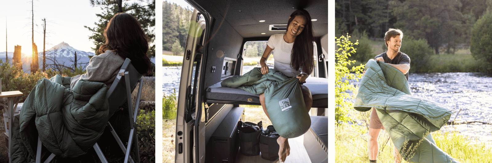 The HEST Comforter, offered in both a single and double size, is designed based upon the science of better sleep to provide the comfort and warmth of your home comforter in a packable, smart, outdoor ready design. The Comforter features 100% recycled polyester fill with no hot melt bonding, outdoor-ready-easy-to-clean fabric, and a clever cinch & tuck footbox design. The footbox keeps the comforter in place & supports thermoregulation throughout the night by allowing glabrous skin ( hands & feet) to easily stick out into fresh air and regulate your body temperature as needed for an optimal sleep experience outdoors. Unlike your traditional sleeping bag, your feet and hands can roam free of constriction! Smart features like top sheet loops and a cinch compression sack make the comforter easy to store, pack, & clean. Cozy up to the best outdoor comforter and sleep better with HEST.