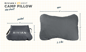 Let's be honest, traveling with your home pillow is not ideal. Traveling with the Rivian x HEST Camp Pillow is a whole new, worry-free, and comfortable experience.